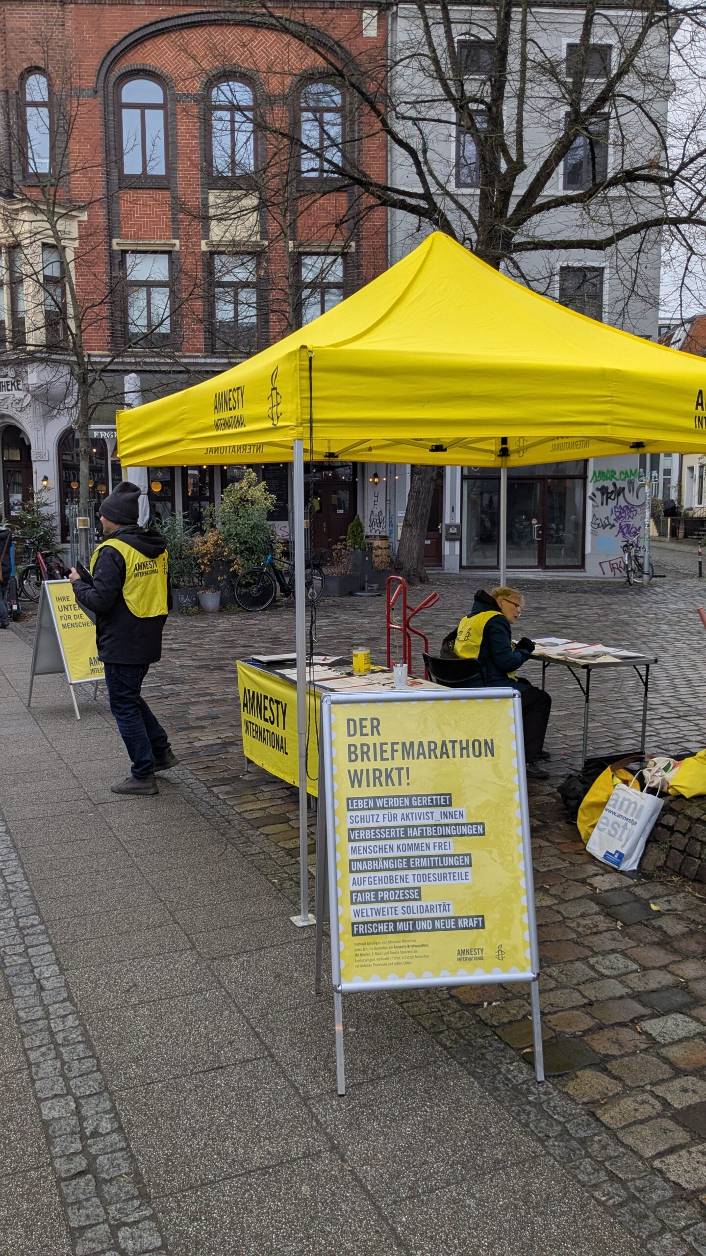 Hier Bilder von unserem Stand am Ulrichsplatz am 13.12., bei dem 250 Briefe unterschrieben wurden.